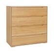 Bukowa komoda KD424 została stworzona z myślą o miłośnikach nowoczesnego minimalizmu. Mimo prostej formy zachwyca i przyciąga wzrok już od progu. Solidne, pozbawione zbędnych zdobień fronty dopełniają subtelne, wycięte w drewnie uchwyty, tworzące system otwierania i zamykania. Wyposażona w pojemne i funkcjonalne szuflady idealnie sprawdzi się do przechowywania licznych domowych bibelotów. Jej atutem jest też duży, bukowy blat, na którym pięknie prezentować się będą rodzinne pamiątki lub fotografie. Komoda osadzona została na niewielkich drewnianych nóżkach. Istnieje jednak możliwość dokupienia aluminiowych nóżek o wysokości 1 cm lub 10 cm, co zmienia charakter mebla i dodaje mu uroku.