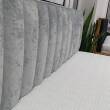 Łóżko Lino to elegancki i modny mebel. Zwraca uwagę wraznymi pasami na zagłówku i ramie. Jego wygląd będzie stanowił doskonałe uzupełnienie każdej modnej sypialni.