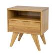 Stylowa szafka nocna SN401, wykonana z litego drewna bukowego. Funkcjonalny korpus szafki tworzy jedna otwarta półka oraz jedna bezuchwytowa szuflada, która świetnie sprawdzi się do przechowywania podręcznych kosmetyków, czy książek. Minimalistyczny design oraz niepowtarzalne, skośne nogi sprawiają, że szafka nocna SN401 idealnie wpisuje się w modny, nowoczesny styl. Niewielki, ale piękny blat mebla to idealne miejsce na rodzinne zdjęcie lub ozdobną lampkę nocną. Ciepło naturalnego drewna bukowego, z którego powstała stworzy piękny, przytulny klimat w sypialni.