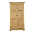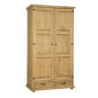 Dwudrzwiowa, woskowana szafa SF701 zaprojektowana w stylu rustykalnym, wykonana w całości z litego drewna sosnowego. Po lewej stronie znajduje się drążek, po prawej natomiast trzy półki. W dolnej części szafy znajdują się dwie szuflady, wysuwane na drewnianych prowadnicach. Mebel posiada trwałą i solidną konstrukcję. Do produkcji zostały wykorzystane ręcznie wykonywane metalowe uchwyty i zawiasy z efektem postarzenia. Szafa sosnowa SF701 to idealne rozwiązanie dla wyposażenia garderoby, przedpokoju lub sypialni. Nada każdemu wnętrzu niepowtarzalny klimat, pełen ciepła i rodzinnej atmosfery. Dzięki jej funkcjonalności przechowywanie stanie się o wiele prostsze.