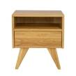Stylowa szafka nocna SN401, wykonana z litego drewna bukowego. Funkcjonalny korpus szafki tworzy jedna otwarta półka oraz jedna bezuchwytowa szuflada, która świetnie sprawdzi się do przechowywania podręcznych kosmetyków, czy książek. Minimalistyczny design oraz niepowtarzalne, skośne nogi sprawiają, że szafka nocna SN401 idealnie wpisuje się w modny, nowoczesny styl. Niewielki, ale piękny blat mebla to idealne miejsce na rodzinne zdjęcie lub ozdobną lampkę nocną. Ciepło naturalnego drewna bukowego, z którego powstała stworzy piękny, przytulny klimat w sypialni.