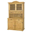 Woskowana witryna – kredens KW706 zaprojektowana w stylu rustykalnym, wykonana w całości z litego drewna sosnowego. Składa się z dwóch głównych elementów: komody i nadstawki. W środku dwudrzwiowej komody znajduje się praktyczna półka. Pod blatem znajdują się dwie szuflady wysuwane na drewnianych prowadnicach. Nadstawka natomiast składa się z dwóch oszklonych drzwiczek zewnętrznych, za którymi znajduje się półka. Pod drzwiczkami umieszczone zostały trzy małe szufladki. Górą nadstawka została wykończona wieńcem w kształcie półłuku. Mebel posiada trwałą i solidną konstrukcję. Do produkcji zostały wykorzystane ręcznie wykonywane metalowe uchwyty i zawiasy z efektem postarzenia. Witryna – kredens nie musi kojarzyć się wyłącznie z kuchnią. Może stać się częścią dowolnego pomieszczenia. W salonie może spełniać funkcję barku, w jadalni posłuży do przechowywania sztućcy i zastawy, w sypialni natomiast pomieści pościel i ręczniki. Witryna – kredens KW706 nada każdemu wnętrzu niepowtarzalny klimat, pełen ciepła i rodzinnej atmosfery. Dzięki jej funkcjonalności przechowywanie stanie się o wiele prostsze.